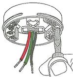 - Strip back as necessary one end of the down flex and connect it to the light fitting, the end of the outer covering should be within the back of the fitting when it is finally secured. Make sure that the individual wires are wrapped around the staining lugs on the light fitting - these prevent the weight of the lamp being taking just by just the screw terminations.